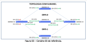 - Cenário 03: Topologia com anel principal e subanel com compartilhamento de link.