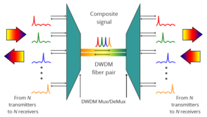 A tecnologia DWDM (Multiplexação densa por divisão de comprimento de onda) permite que múltiplos sinais de dados sejam transmitidos simultaneamente por uma única fibra óptica, usando diferentes comprimentos de onda (ou "cores" de luz). Cada comprimento de onda carrega um canal de dados independente, o que aumenta drasticamente a capacidade de transmissão da fibra sem a necessidade de adicionar mais cabos físicos.